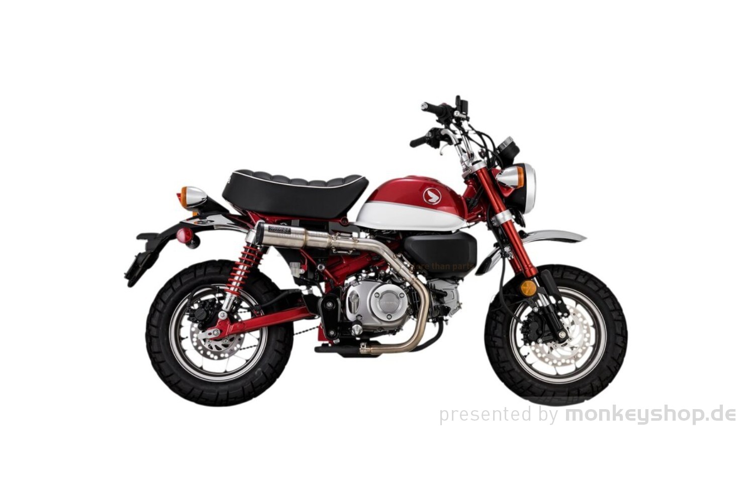 - Der Hi-Output Slip-On verleiht der leichtgewichtigen Monkey einen tiefen röhrenden Sound und ein wunderschön gebürstetes Edelstahlfinish.