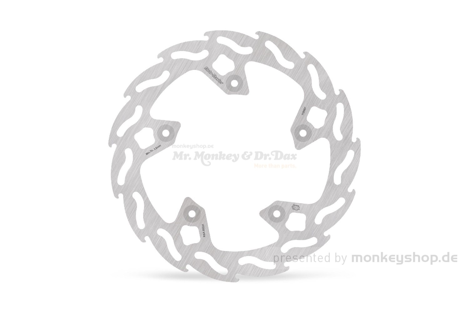 Bremsscheibe von Moto-Master für die vordere Scheibenbremse der Honda Monkey 125 (JB02 Euro4 / JB03 Euro5 / JB05 Euro5+), Honda MSX 125 (alle Modelle einschl. JC92A GROM) und Honda Dax 125 (JB04 Euro5 / JB06 Euro5+). Mit Zulassung/TÜV/ABE für den deutschen Straßenverkehr.