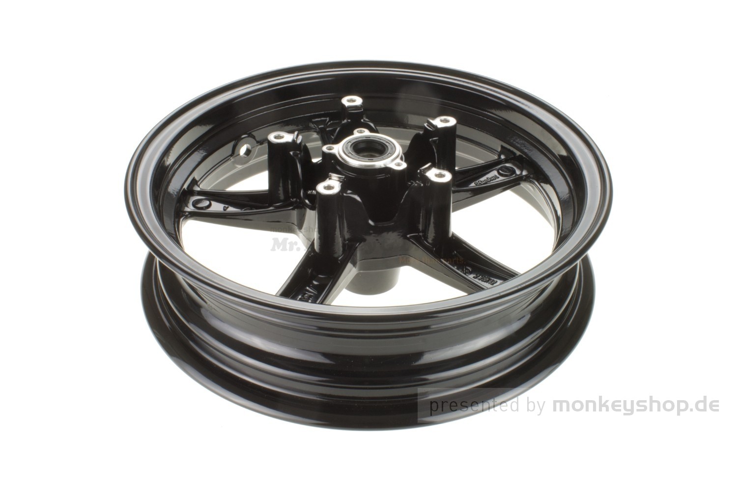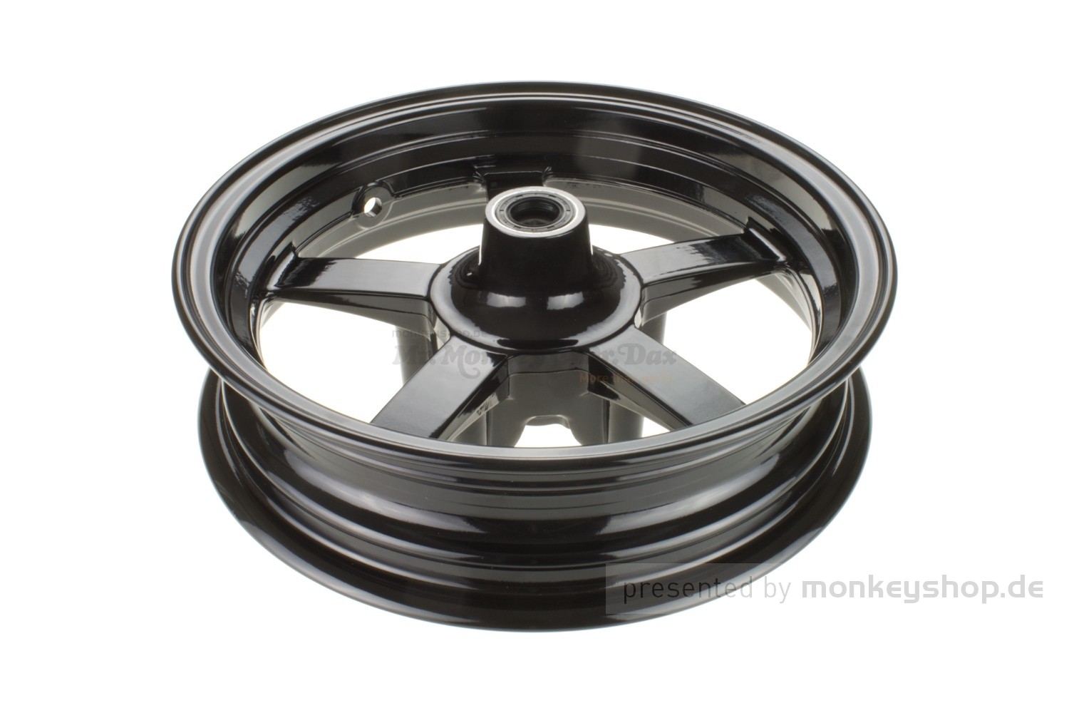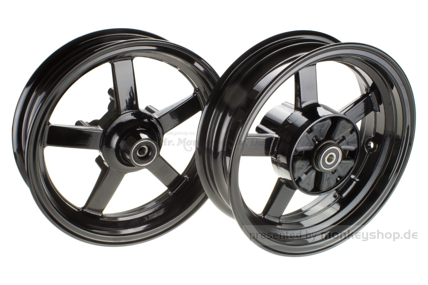 Ein Satz 12" Felgen aus schwarz pulverbeschichtetem Aluminium passend für sämtliche Honda Monkey 125 Modelle.