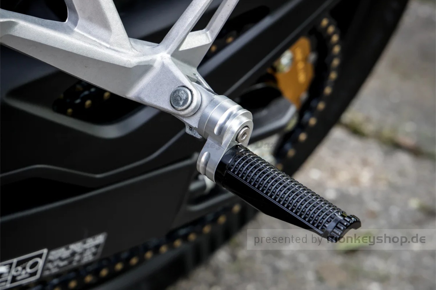 Der CNC gefräste Multiangel Positionierer ist vom TÜV abgenommen und als Einzelteil in der ABE für die FRS2 Fussrasten enthalten. Eine Eintragung in die Papiere entfällt.