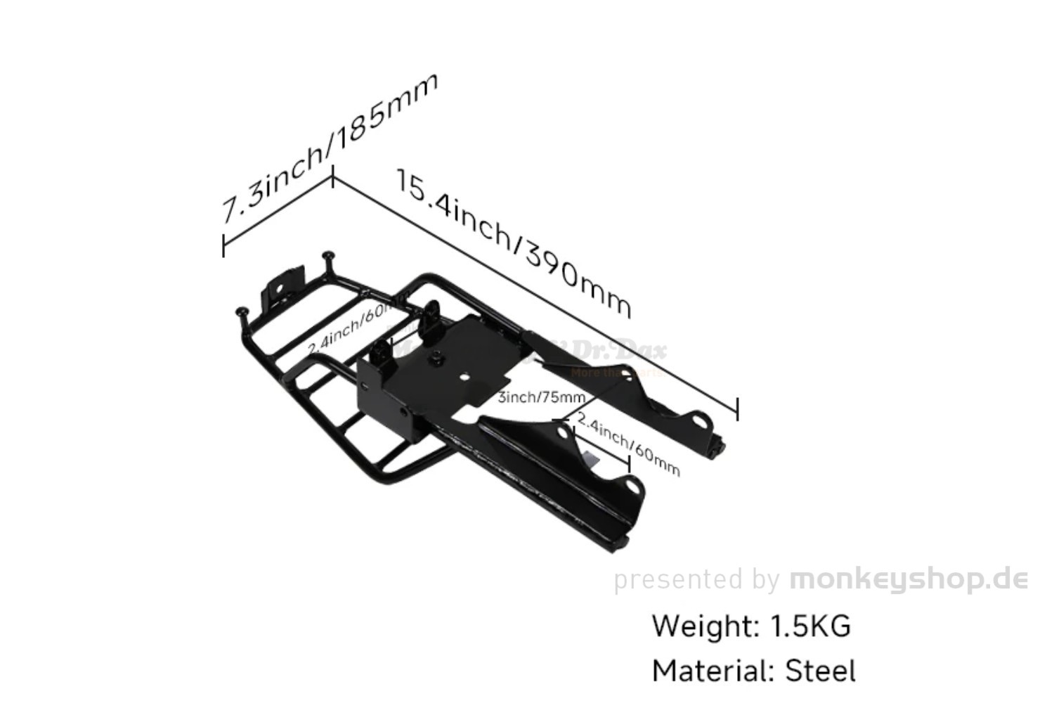 Schwarzer Gepäckträger für sämtliche Honda Gorilla und Honda Monkey Z50 Modelle und deren Replikas. Passt nicht für die Honda Monkey 125 (ab Baujahr 2018 / Z125MA) oder Honda Monkey Z50A.
