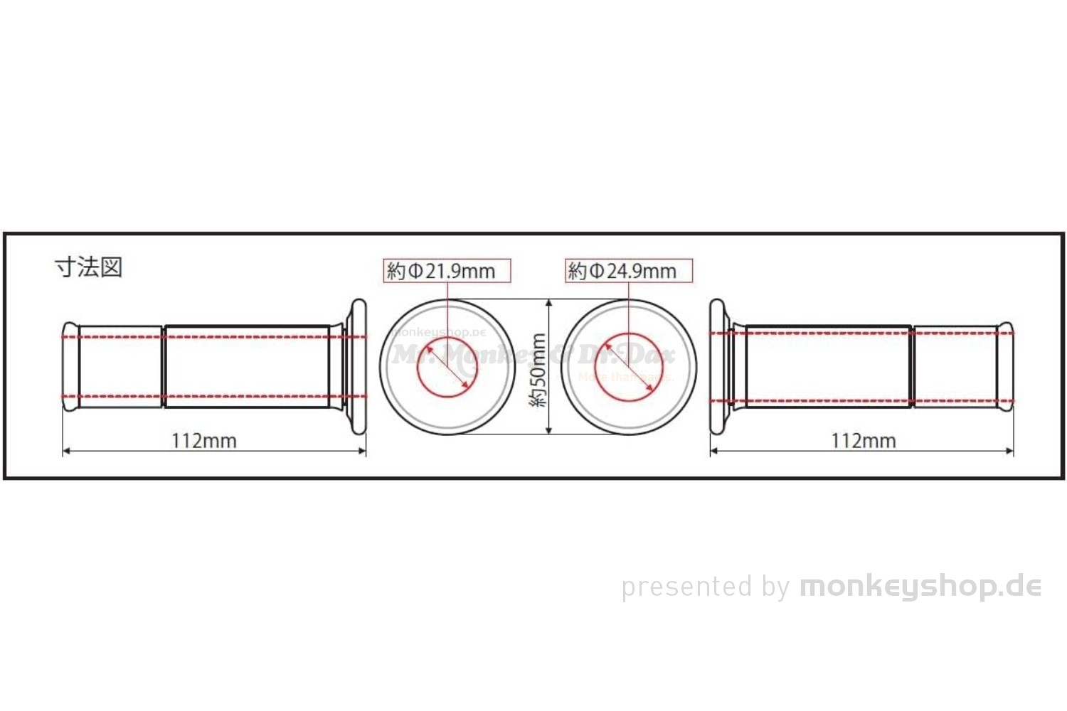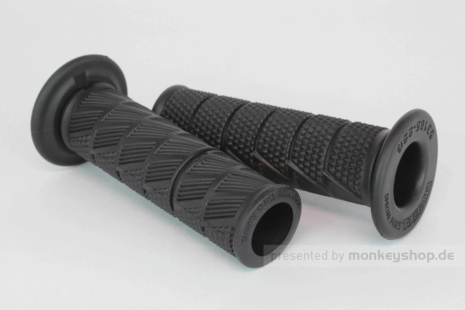 Ein Satz TAKEGAWA Griffgummis in schwarz mit einer Länge von 112mm und den Innendurchmessern ø21,9 und ø24,9 mm. Unter anderem passend für die Takegawa Schnellgasgriffe.
