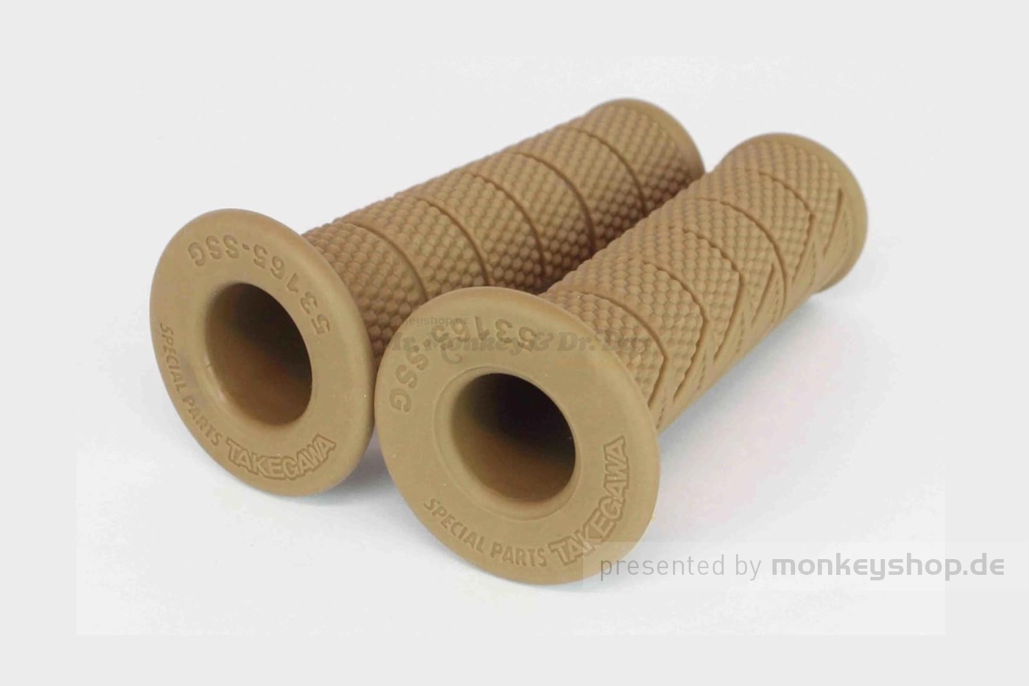 Ein Satz TAKEGAWA Griffgummis in beige mit einer Länge von 112mm und den Innendurchmessern ø21,9 und ø24,9 mm. Unter anderem passend für die Takegawa Schnellgasgriffe.