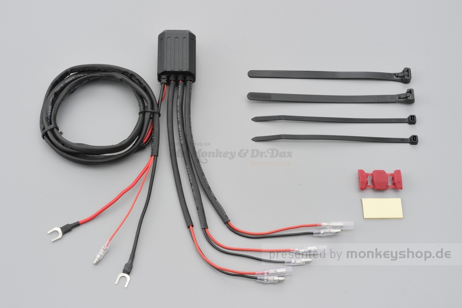 Mit diesem kompakten und wasserdichten DAYTONA "D-UNIT WR" 3-Port Zubehör-Stromverteiler lassen sich elektrische Zusatzgeräte sauber, sicher und zentral an das Bordnetz anschließen. Die Stromversorgung wird automatisch über die Zündung geschaltet. Zubehörgeräte werden also gemeinsam mit dem Zündschlüssel ein- und ausgeschaltet. Dadurch wird ein unbeabsichtigtes Entladen der Batterie zuverlässig verhindert.