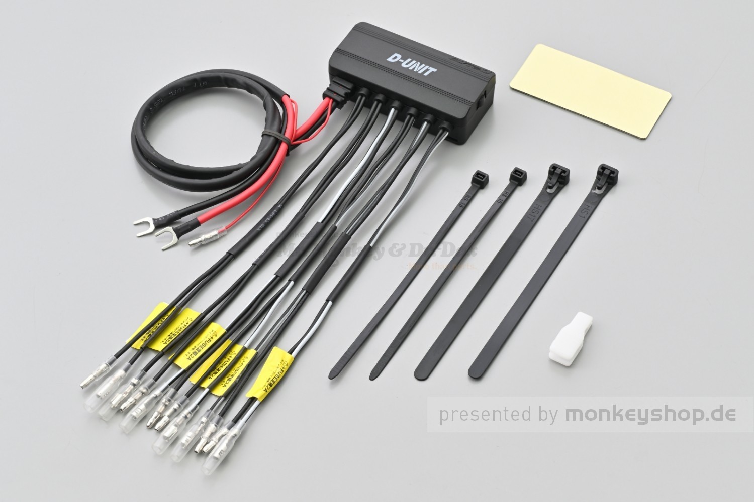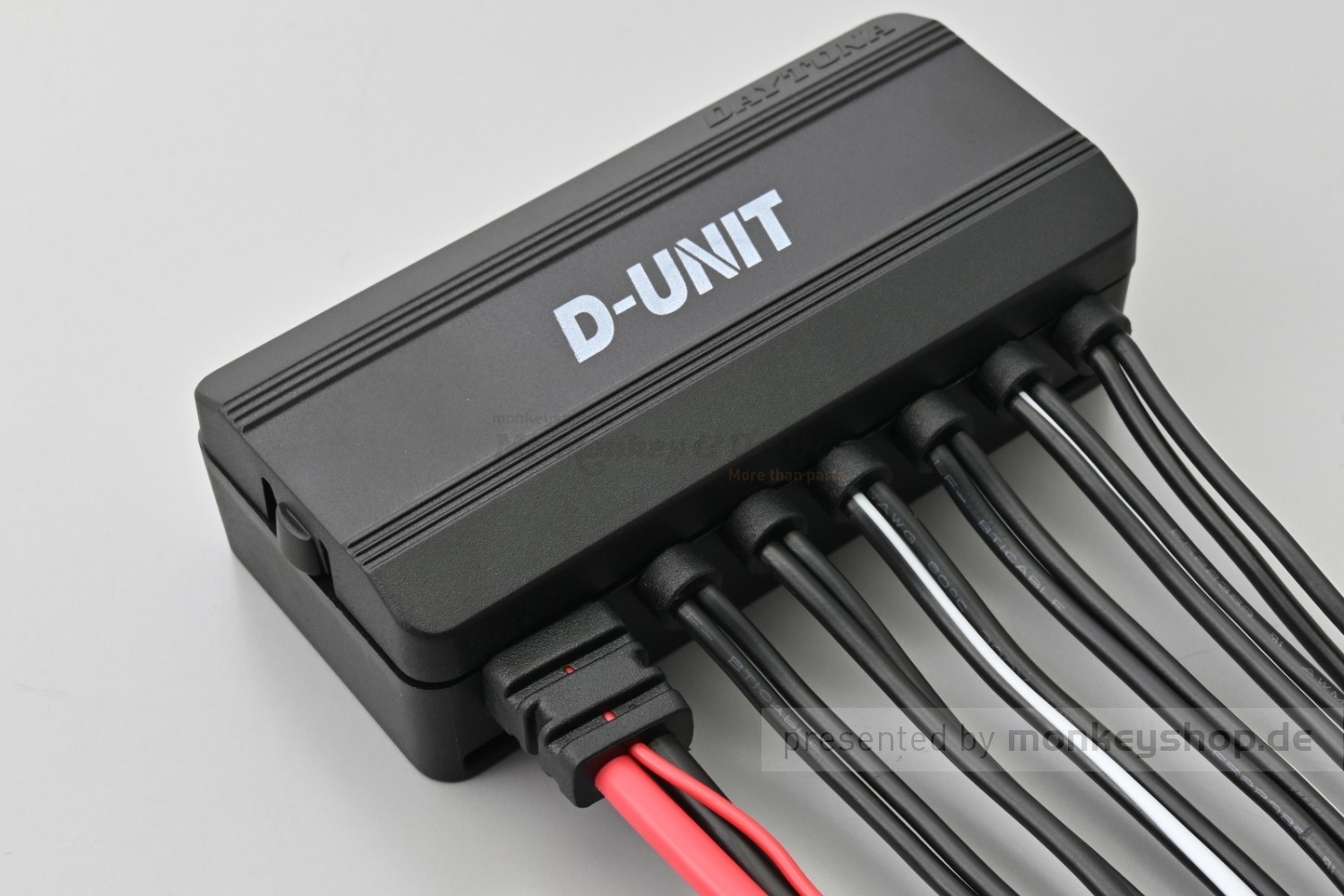 Mit diesem kompakten DAYTONA "D-UNIT" 6-Port Zubehör-Stromverteiler lassen sich bis zu 6 elektrische Zusatzgeräte sauber, sicher und zentral an das Bordnetz anschließen. Die Stromversorgung wird automatisch über die Zündung geschaltet. Zubehörgeräte werden also gemeinsam mit dem Zündschlüssel ein- und ausgeschaltet. Dadurch wird ein unbeabsichtigtes Entladen der Batterie zuverlässig verhindert.