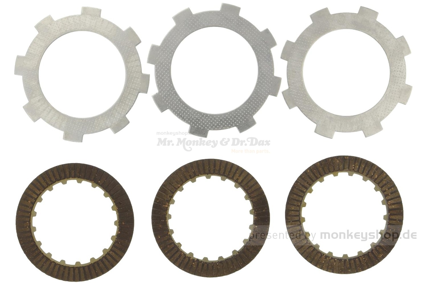 Ein kompletter Satz TAKEGAWA Kupplungsbeläge und Stahlscheiben passend für die verstärkten (Hand-)Kupplungen von TAKEGAWA (02-01-0217 und 02-01-0203)