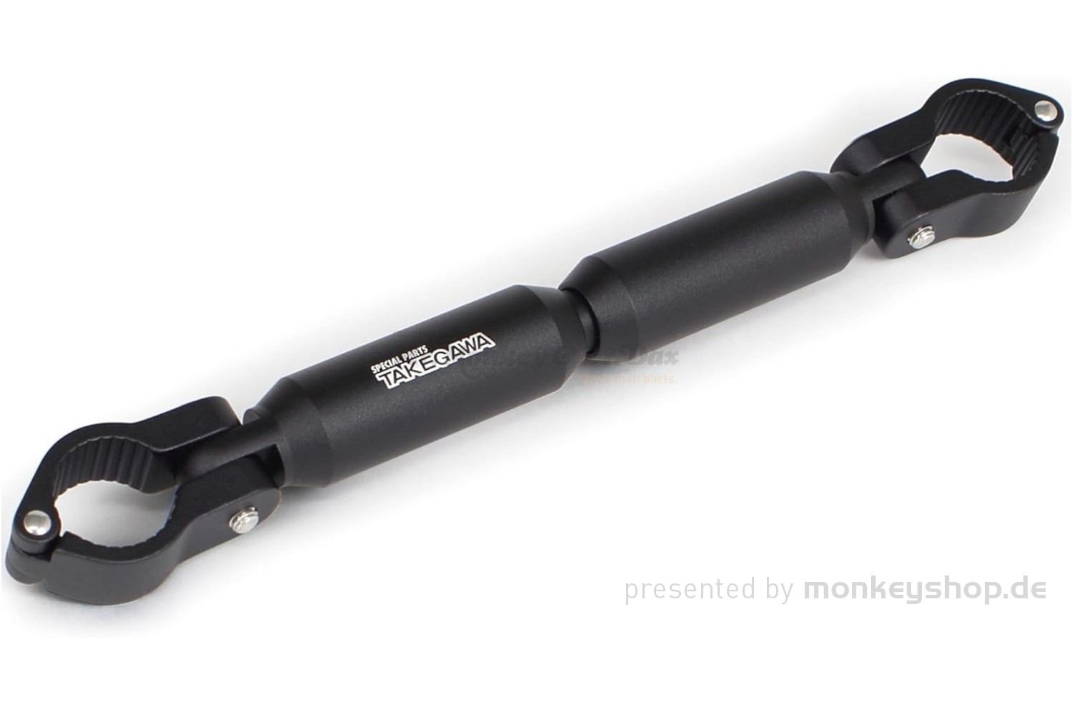 Takegawa Aluminium Lenkerstrebe mit matter, gestrahlter Oberfläche in schwarz eloxiert. Die Lenkerstrebe reduziert Vibrationen und verbessert das Lenkerverhalten.