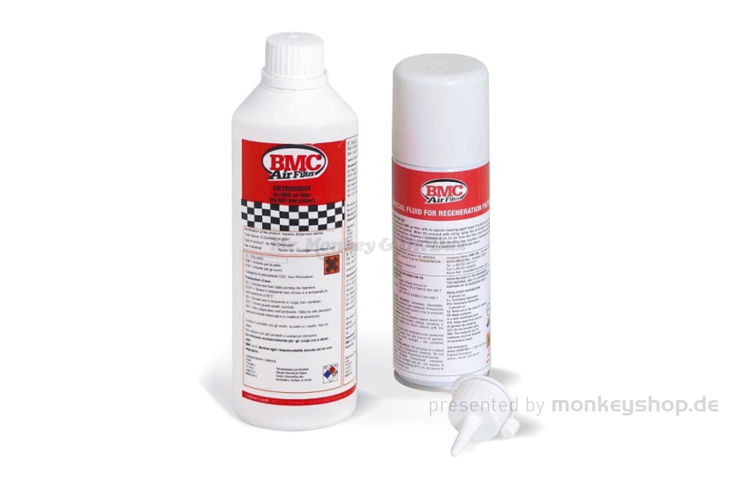 BMC Luftfilter Reinigungsset bestehend aus 1 Flasche (500ml) Filterreiniger und 1 Spraydose (200ml) Filteröl. Optimale Filterleistung durch regelmäßige Reinigung und Neuölung.