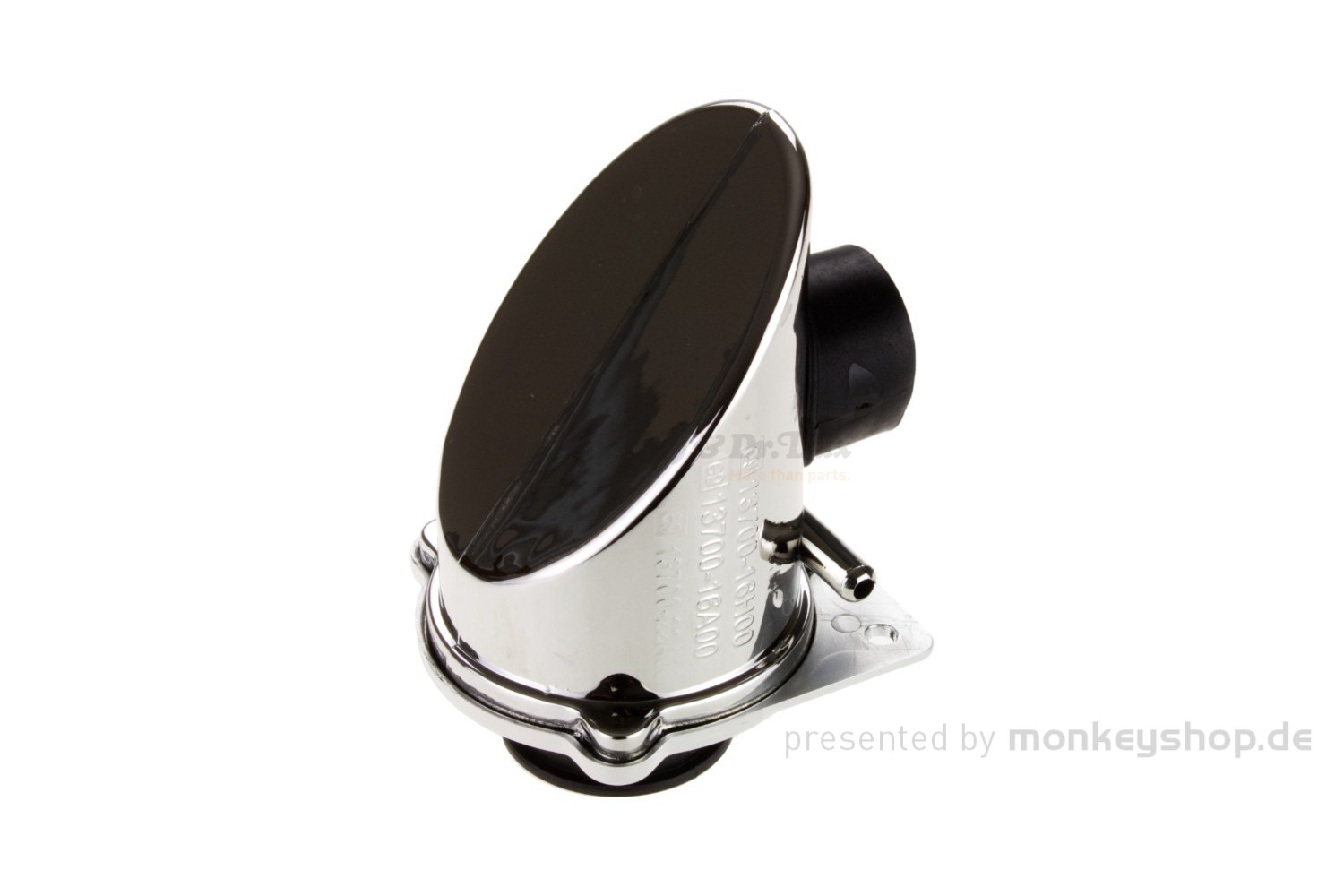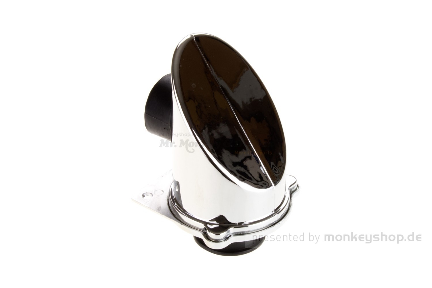 Verchromter Luftfilter mit 38mm Anschluss und e-Prüfzeichen. Ideal für 125cc Skyteam Monkey.