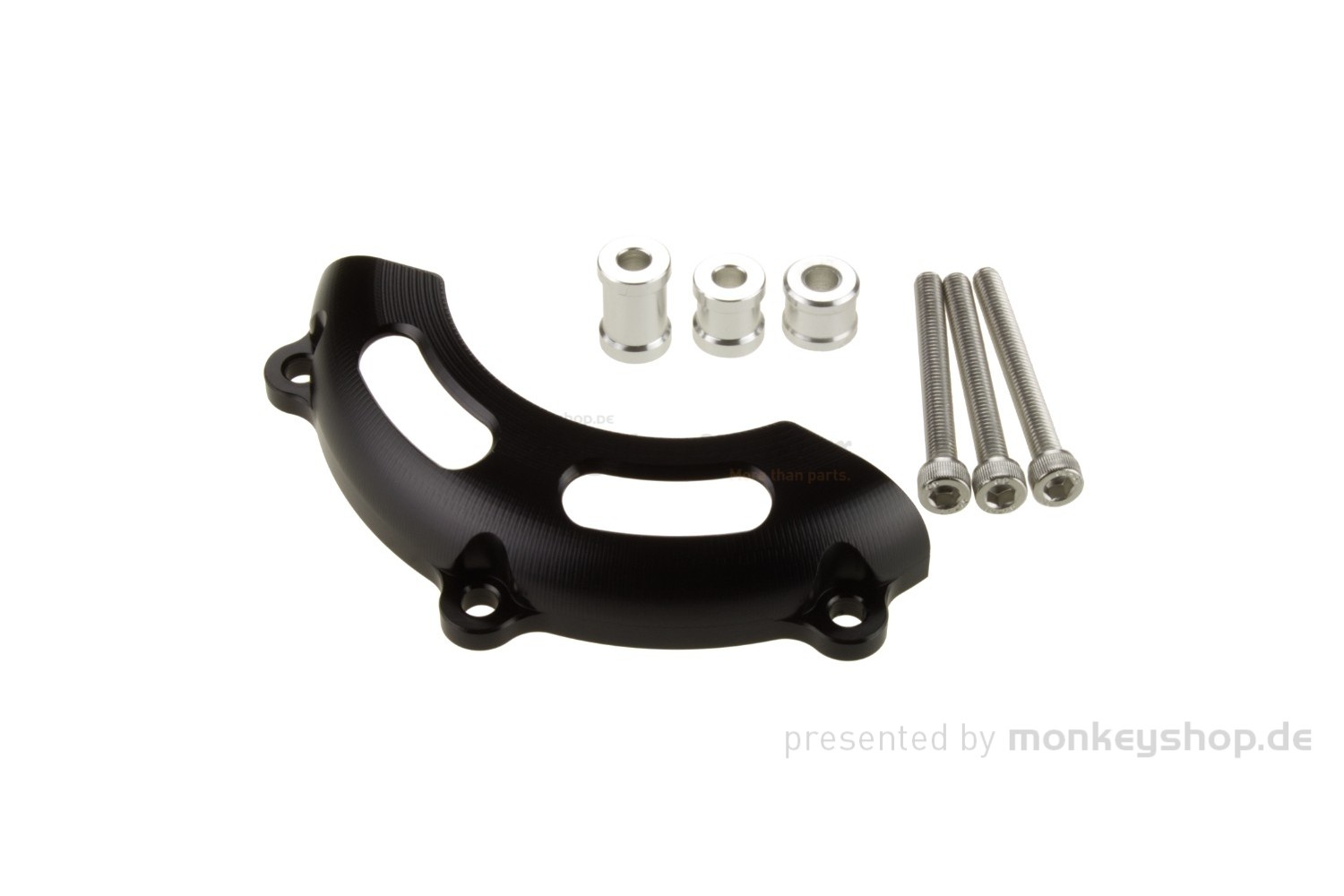 Schutzabdeckung aus CNC gefrästem Aluminium in schwarz eloxiert passend für den Zündungsdeckel der Honda Monkey 125 JB02 (Euro 4 / 4-Gang) und für Honda MSX 125 JC61 und JC75.