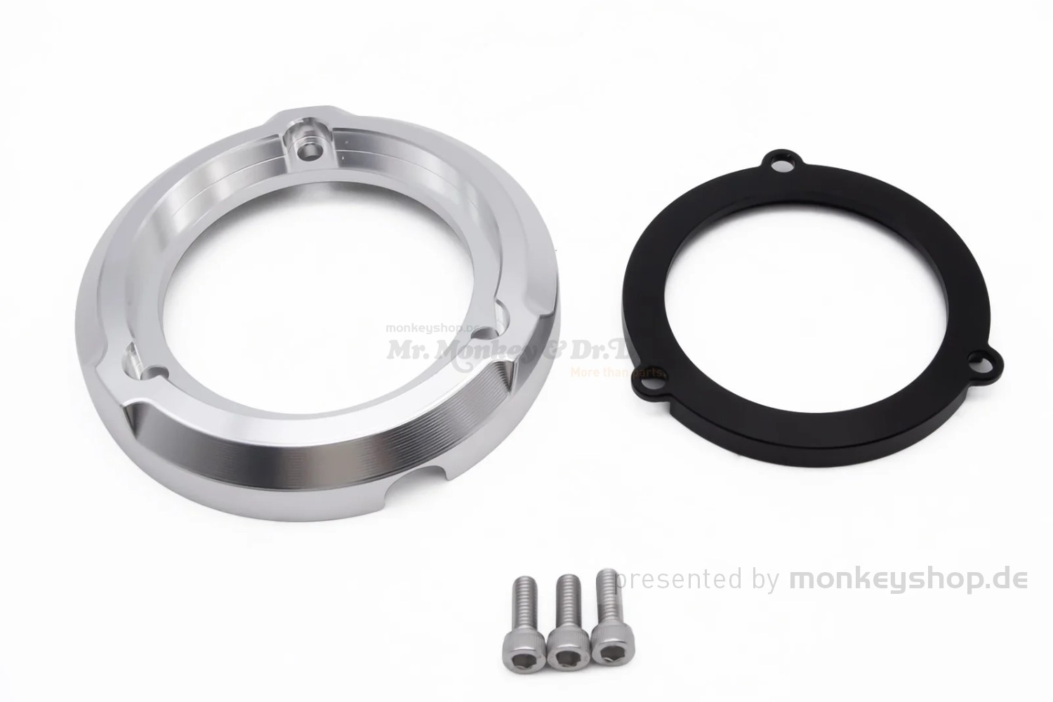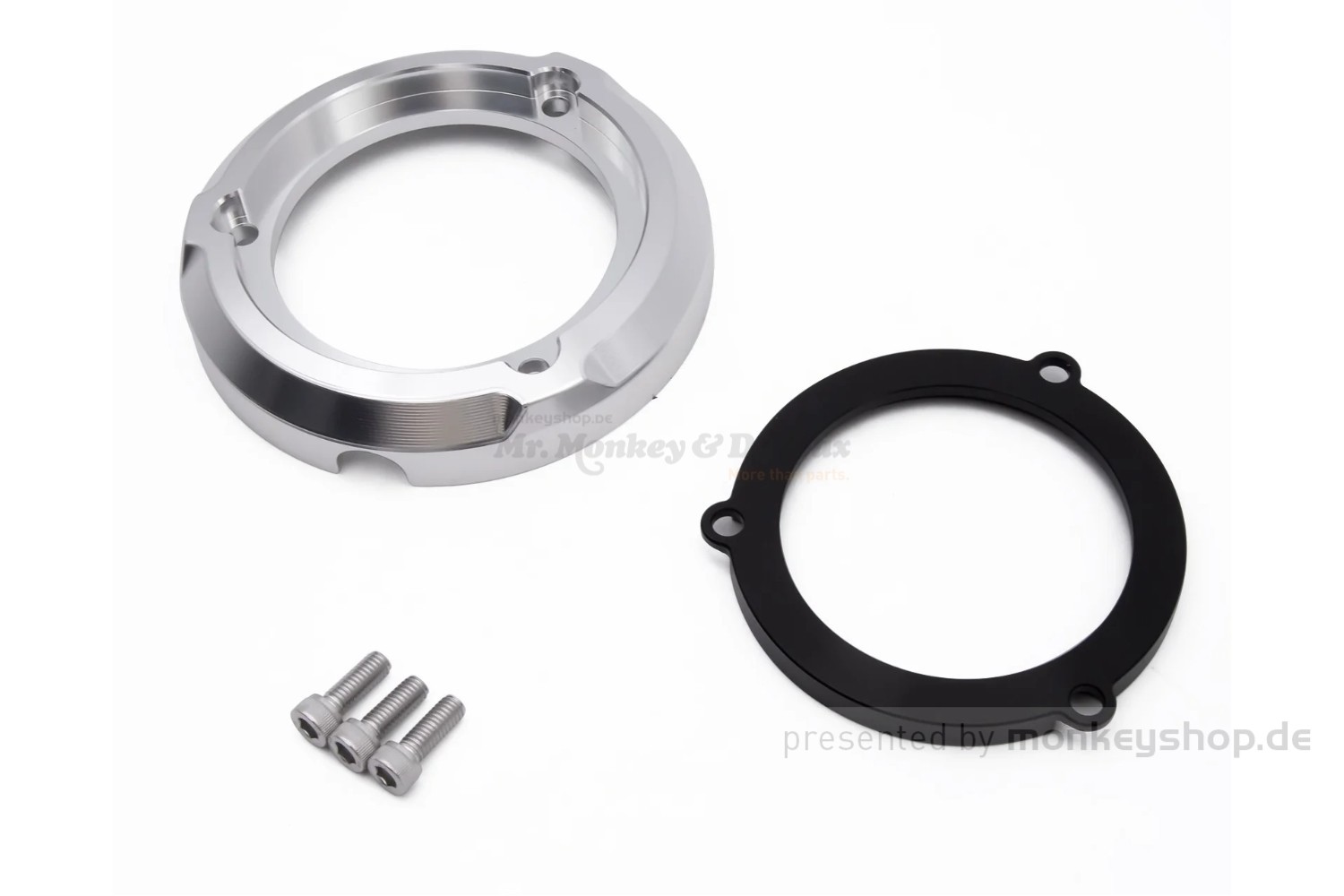 CNC gefräster Aluminium Schutz Ring in schwarz/silber eloxiert für den Kupplungsdeckel der Honda Super Cub 125 (Modell JA48) und Honda Monkey 125 (Modell JB02 / Euro 4)