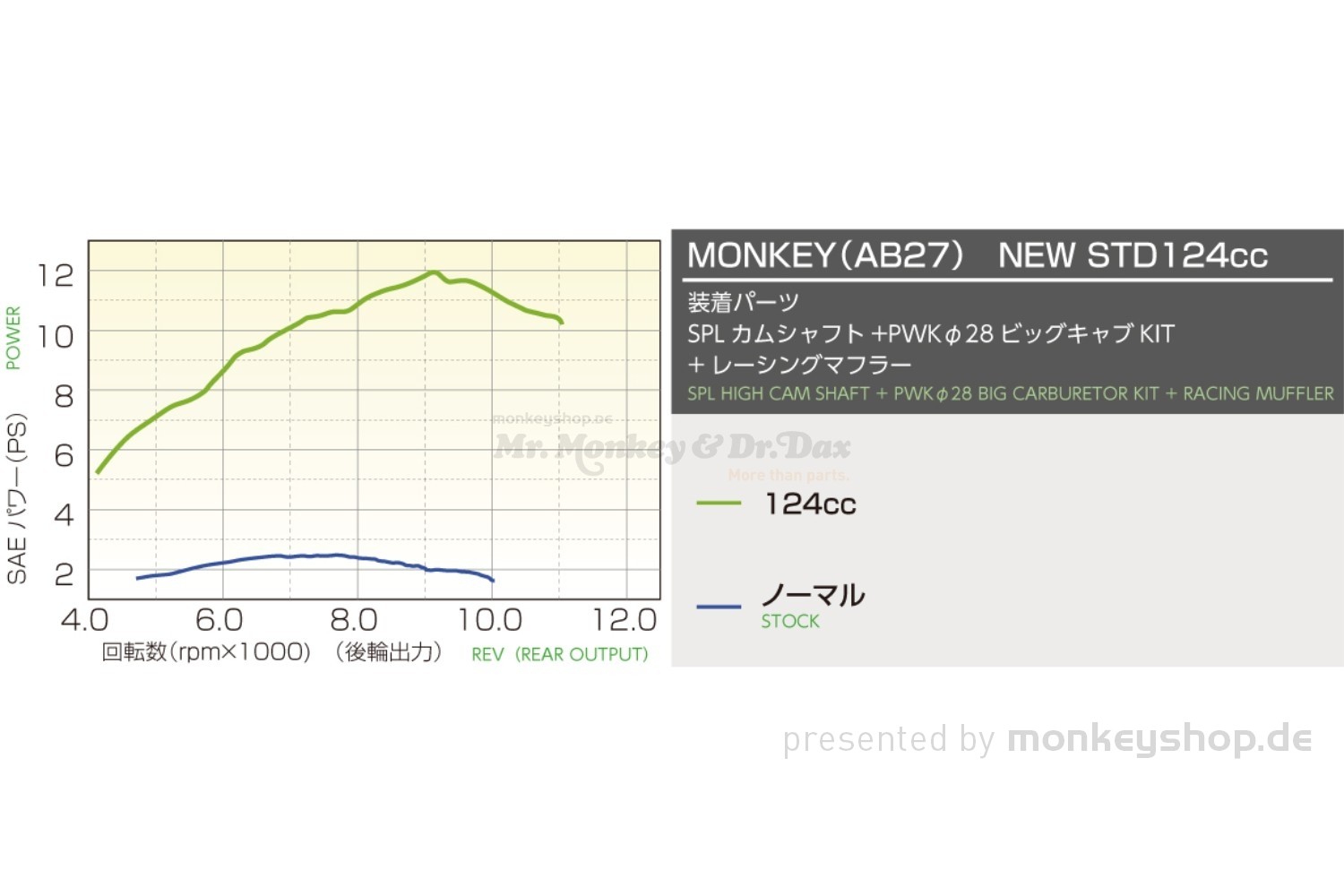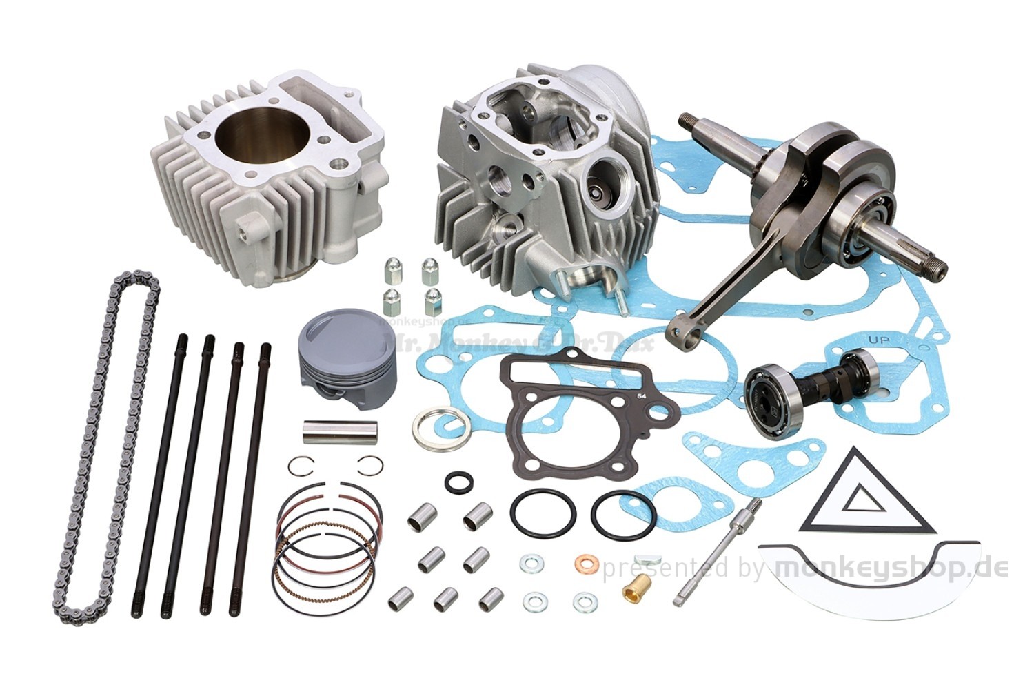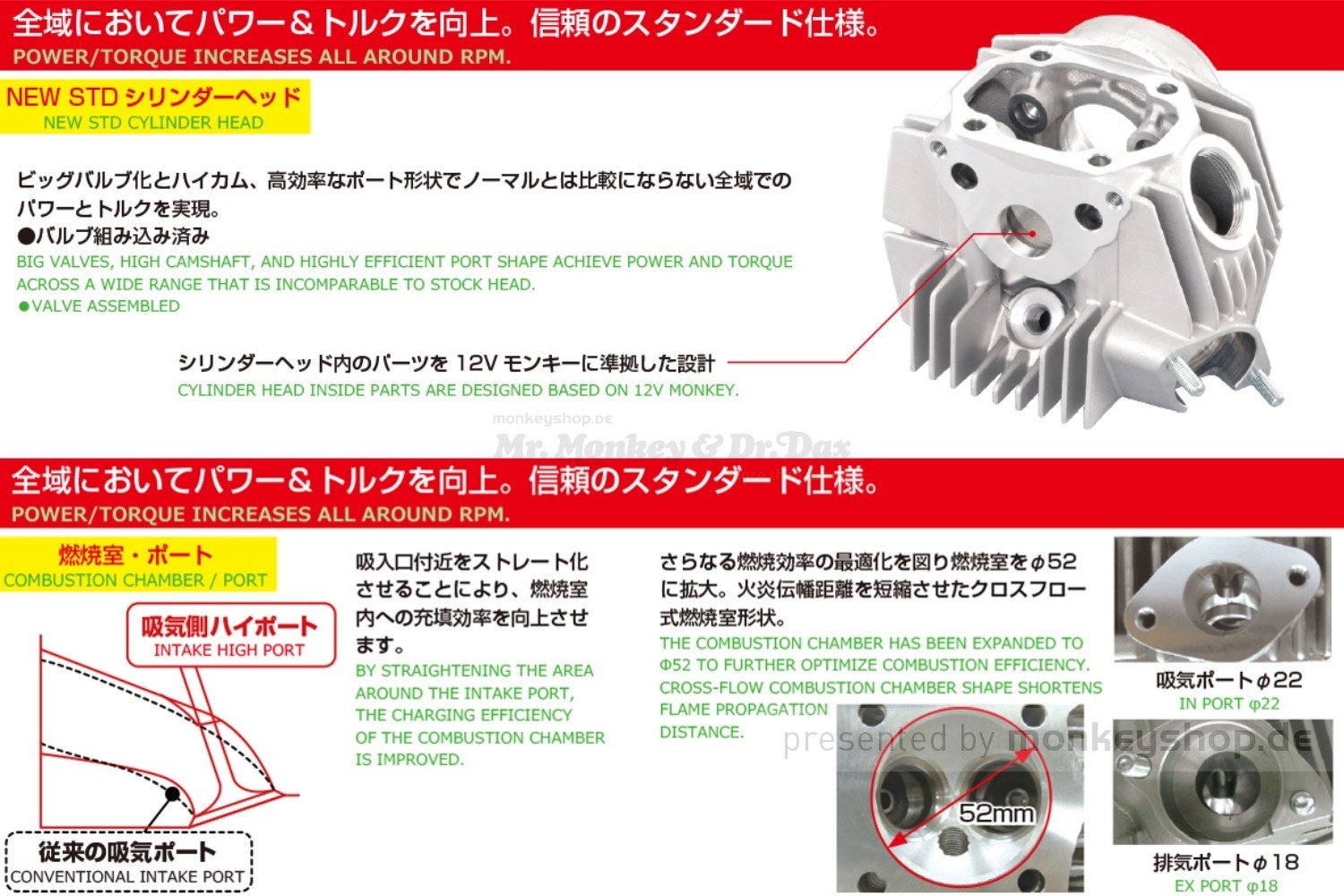 Kitaco NEW STD Alu Big Bore Kit 124cc mit Zylinderkopf + Nockenwelle + Kurbelwelle f. Monkey Z50 12V + Gorilla 12V + Dax 12V