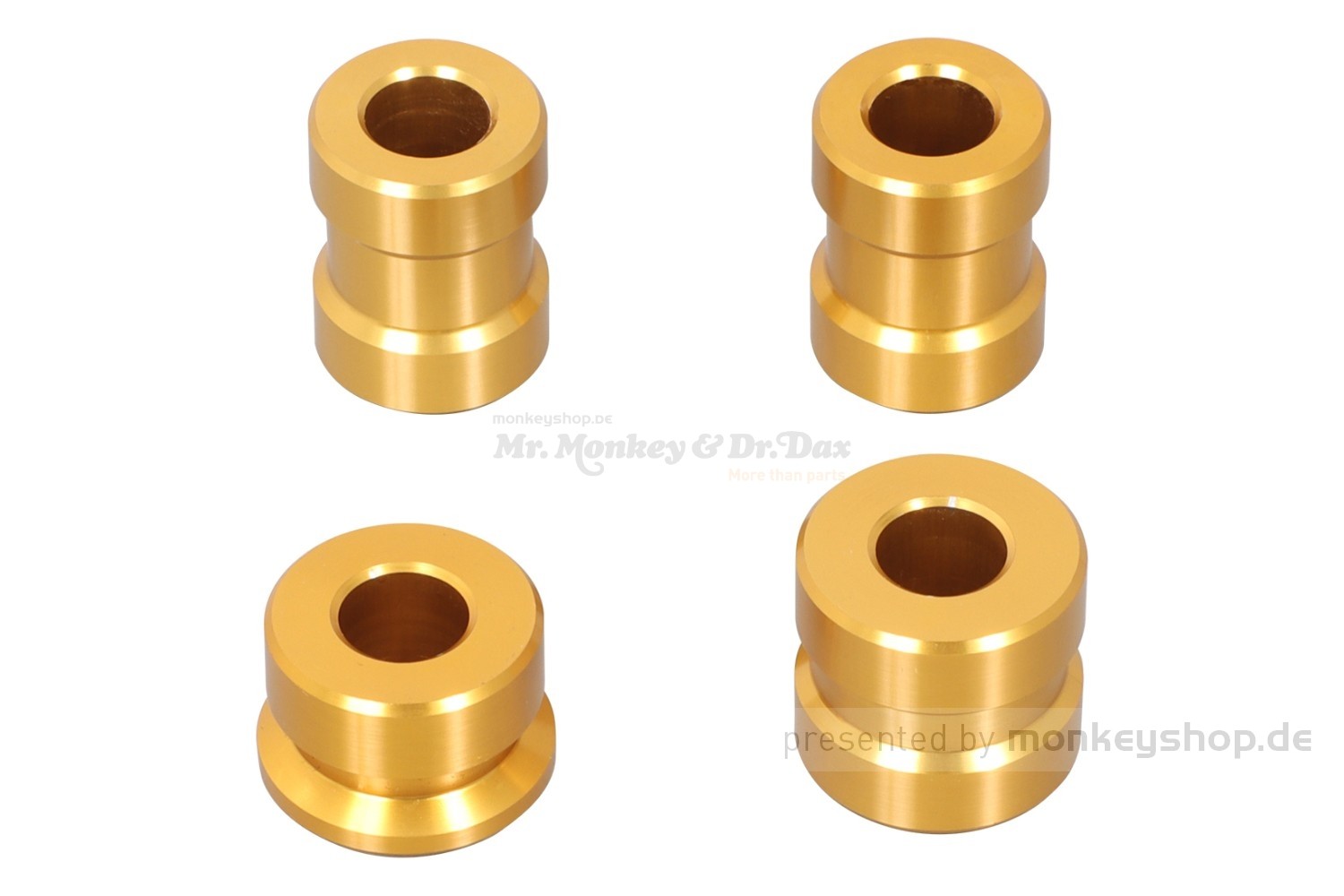 Kitaco Spacer Set aus Aluminium in gold eloxiert für das Vorder- und Hinterrad und ersetzt die originalen Teile von Honda. Passend für die Honda MSX 125 GROM JC92 und Honda Dax 125. (JB04 und JB06)