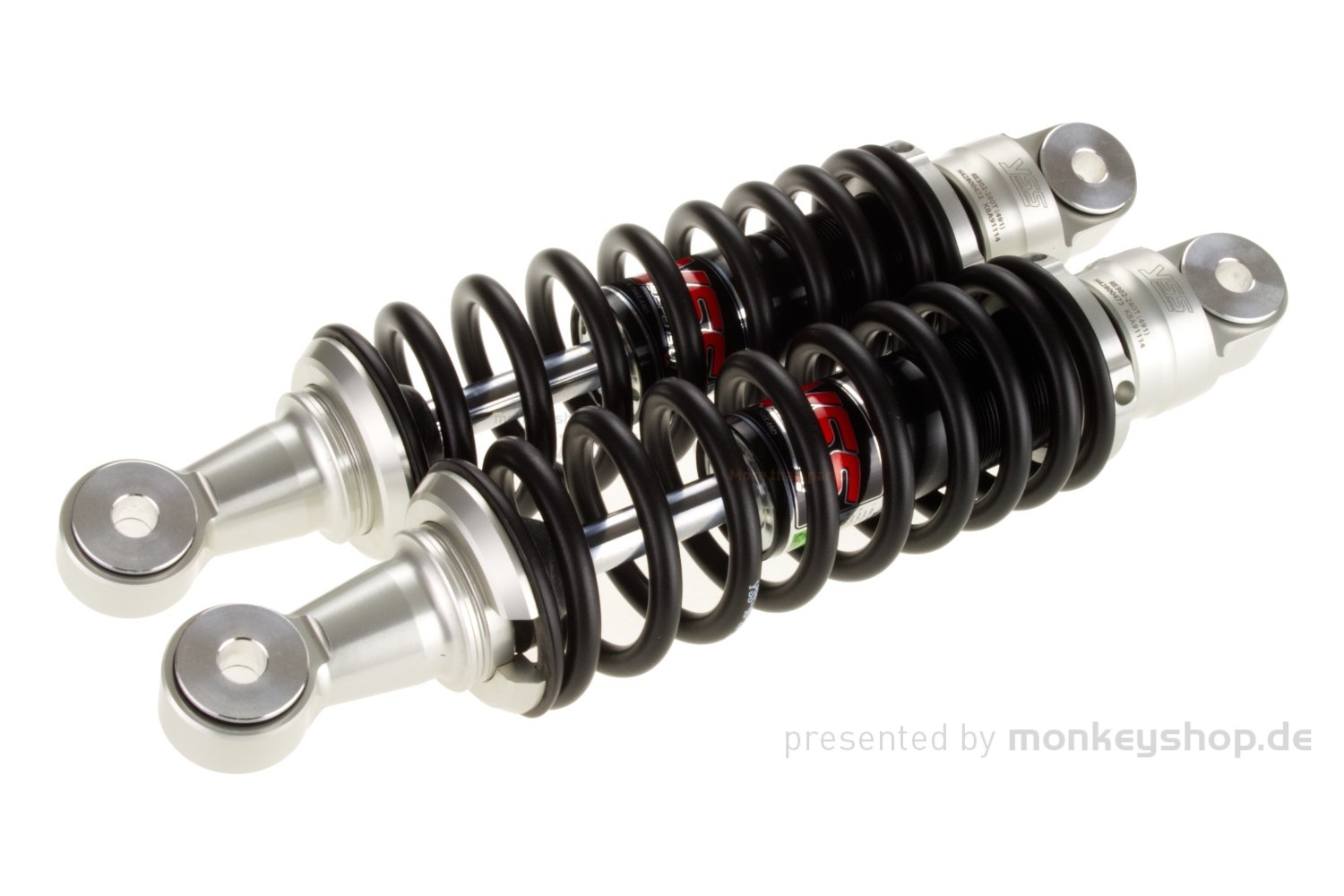 Ein Paar/Satz YSS Gasdruck Stoßdämpfer in silber mit schwarzer Feder und 280mm Länge. Ideal für schwere Fahrer.