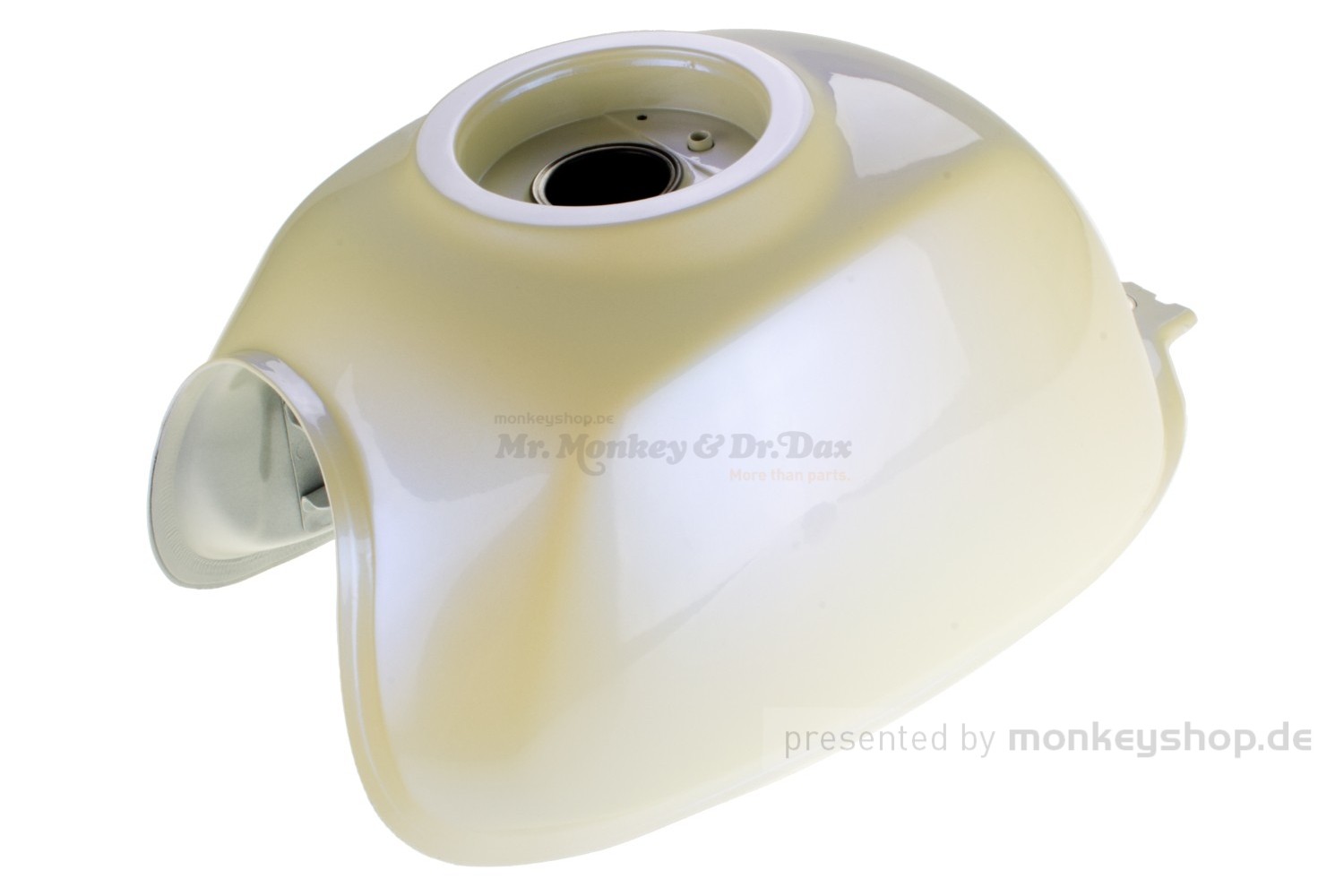 Ein Kraftstofftank in perlmutt weißer Ausführung passend für sämtliche Honda Monkey 125 Modelle.