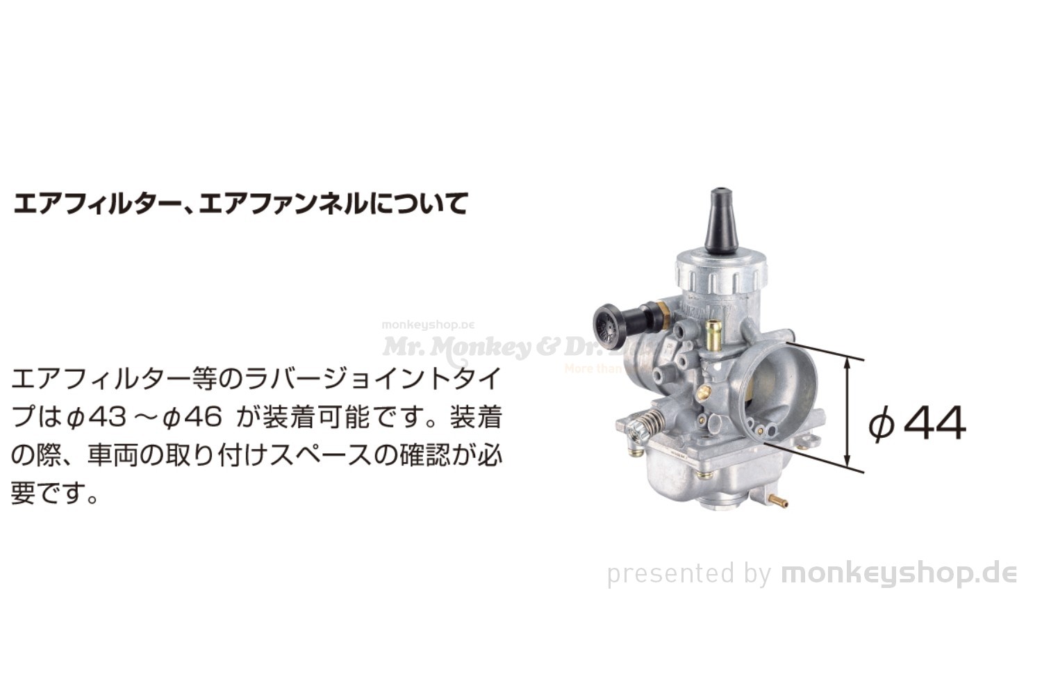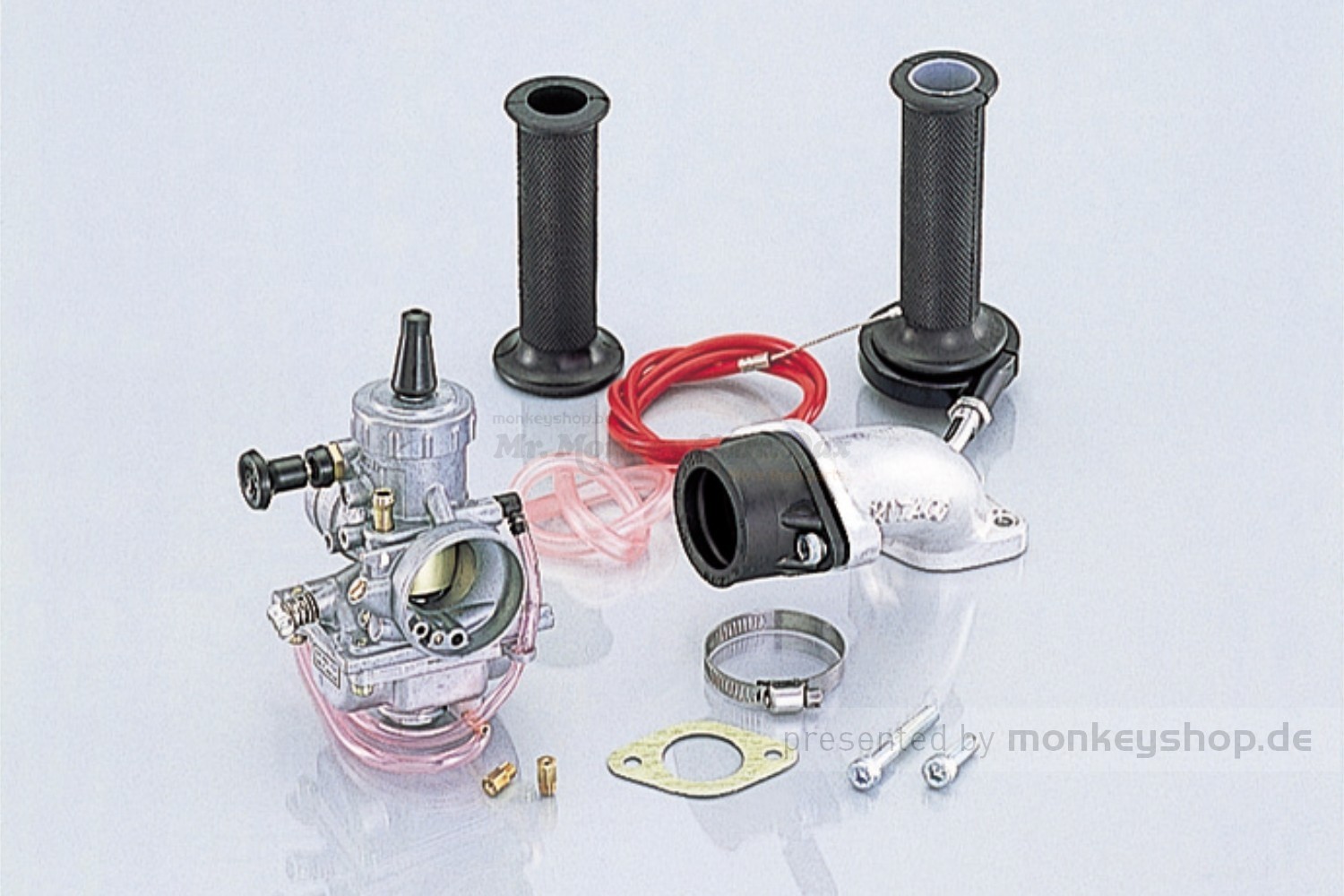Hochwertiges Kitaco Vergaser Set mit originalem MIKUNI VM26-671 Vergaser (Made in Japan) inklusive Ansaugstutzen, Schnellgasgriff, Griffgummi und Gaszug passend für sämtliche Honda Monkey Z50 und Honda Gorilla Modelle.